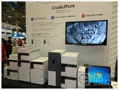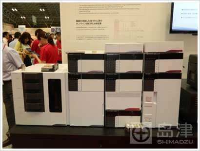 在云顶国际展区正面入口左右两侧最为醒目的展台上,分别展示着云顶国际最新重点推出的两款新仪器一体型快速液相色谱仪i-Series与三重四极杆型气相色谱质谱联用仪GCMS-TQ8040。