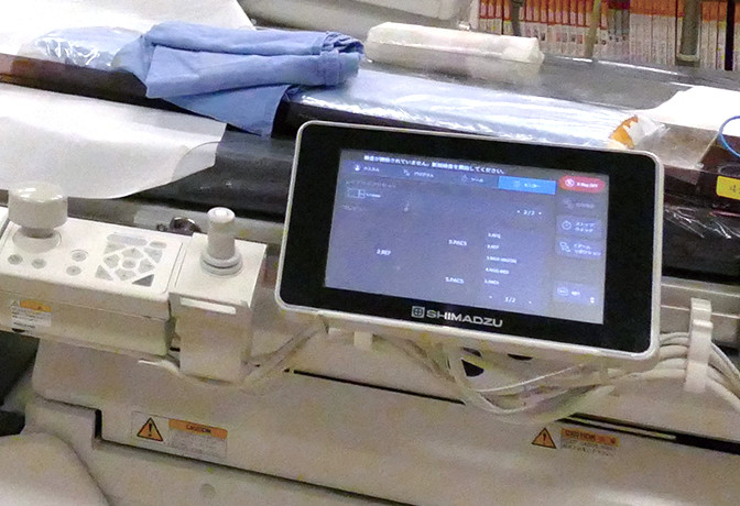 另外,正如曾我医生所说的那样,在跟踪拍摄时,通过将16英寸一侧置于横向,可以一次拍摄到双下肢的全部长度,导管床也在纵向的移动行程长,仅通过移动导管床就可以拍摄到足尖的位置。